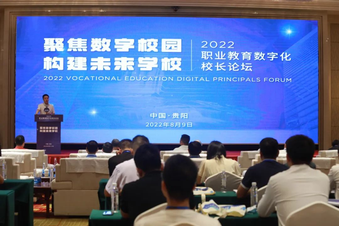 2022年8月9日,由高校畢業生就業協會、中國智慧工程研究會指導,高校畢業生就業協會機器人專業委員會、中國智慧工程研究會智能創新教育工作委員會、貴州省教育裝備行業協會主辦,北京師大智慧教育科技研究院、貴州裝備制造職業技術學院承辦,瀾之教育基金會、中國教育發展戰略學會教育標準專業委員會、北京師大智慧教育科技研究院貴州分院、江蘇匯博機器人技術股份有限公司協辦的“2022年職業教育數字化校長論壇”在貴陽隆重召開!來自全國各地100余位專家領導、職業院校校長、教師蒞臨參加了此次以“聚焦數字校園、構建未來學校”為主題的論壇,共同探討數字化時代下職業教育發展大趨勢以及智慧教育落地實踐經驗。